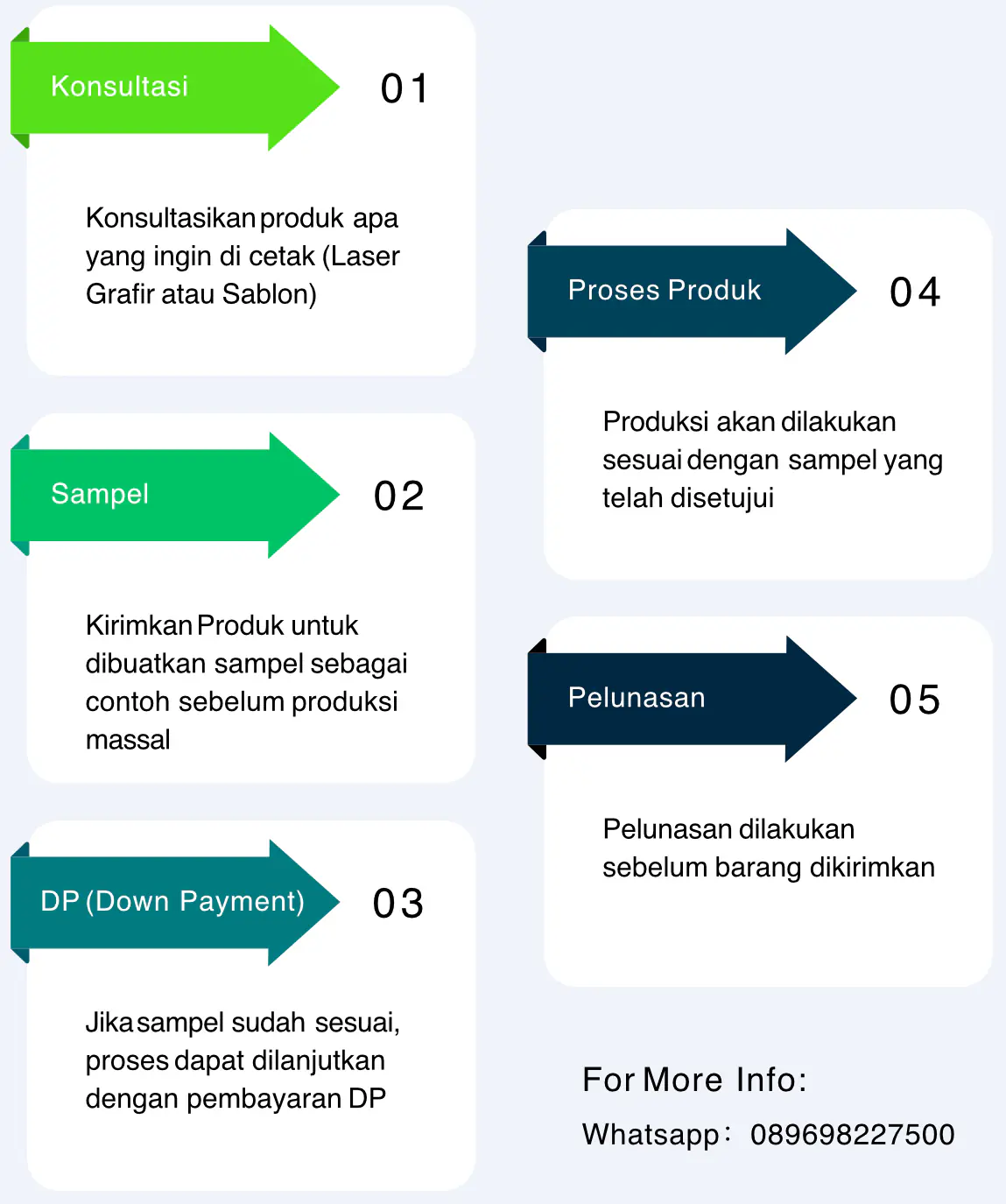 Kepuasan pelanggan adalah prioritas kami. Sebelum produksi massal dilakukan, kami selalu memberikan Digital Preview atau Sampel Fisik (sesuai kesepakatan) untuk Anda setujui. Jika hasil produksi tidak sesuai dengan sampel yang telah disetujui, kami memberikan jaminan garansi pengerjaan ulang.