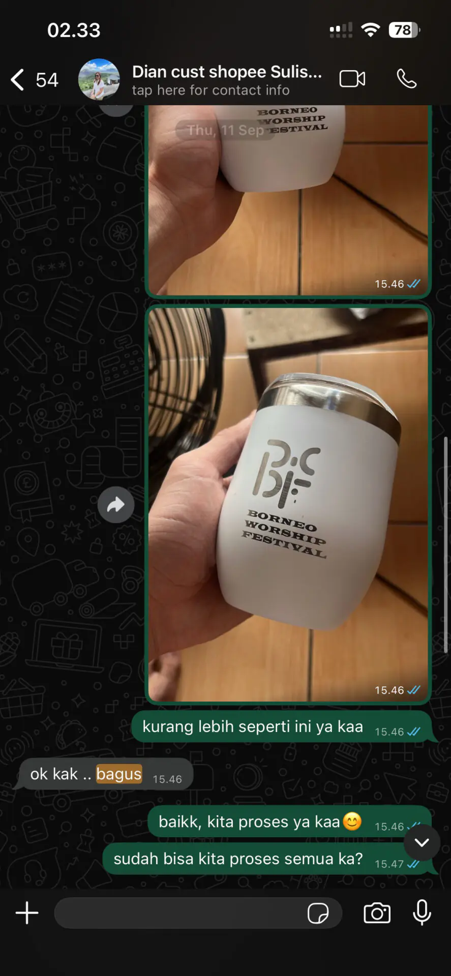 Untuk menjaga kualitas produksi dan efisiensi biaya bagi pelanggan, kami melayani pemesanan dengan minimal order hanya 10 pcs per desain. Jumlah ini sangat ideal bagi pelaku UMKM, pemilik café, maupun kebutuhan kado kolektif dan souvenir perusahaan.
